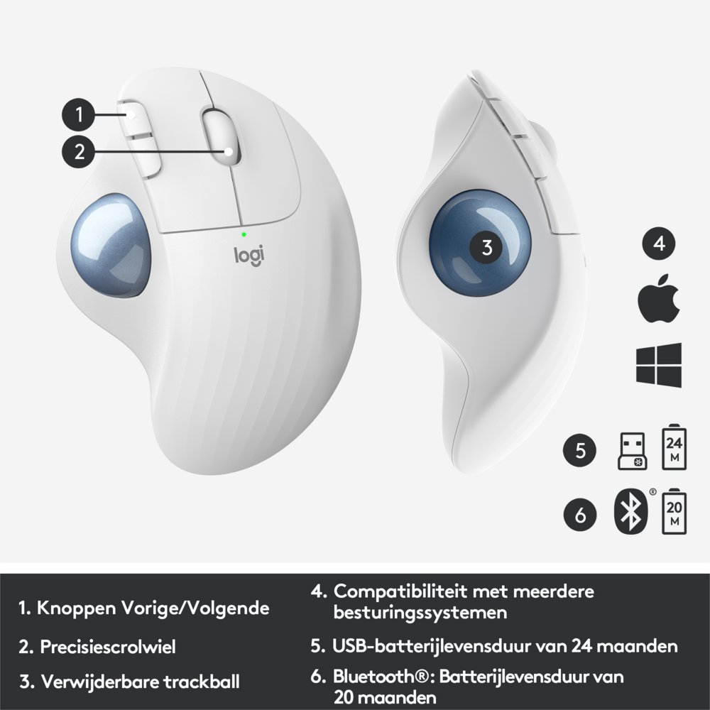 Soepele duimbediening: Track met precisie en met geweldige controle over je cursor op elk oppervlak en met een duim-bedienbare trackball. Pas de cursor-snelheid aan met de Logitech Options-software